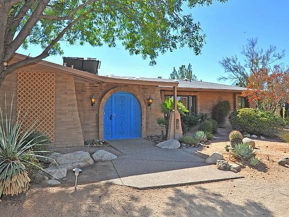 Nestled on 1.13 acres of lush natural desert landscaping, this 4-bedroom/ 2 bath home is a gem awaiting your personal touches! Huge picture windows to soak in the glorious views. Kitchen with island cook-top, butcher block and granite tile counters open into the great room with a cozy beehive fireplace. EXQUISITE 428-sf Arizona Room with wood ceiling! Built-in BBQ finished in cobalt tile. Lap pool that opens onto play pool and a hot tub. Green house for your gardening, 2 car garage PLUS a 2 car covered carport. Pella windows, solar water heater, newer roof and built in bookcases in office/library. Conveniently located close to shopping and restaurants. Don't miss this one!
