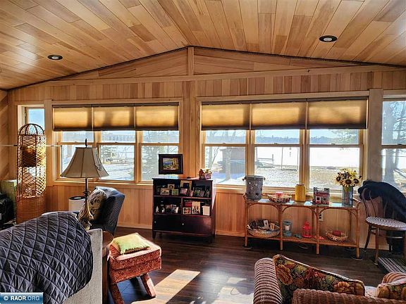 This is your chance to own that lakeshore home on the chain in Side Lake. This lovely 2 bed, 1 bath home sits on a beautiful level .9 acre lot that faces South. The spacious vaulted tongue and groove living room has great views of the lake. There is an extra Den, which could be used as another bedroom. The kitchen is open to the main living area. The 2-stall garage, plus 2 storage units and a bunkhouse near the lake provide for lots of storage space. Enjoy sitting by the campfire along 80 feet of shallow lakeshore on Little Sturgeon. Many updates (some newer windows, metal roof on house, garage & bunkhouse; septic pump in '22 and well pump in '23, newer propane tank & lines '21. furnace replaced in 2014). Schedule your showing today!