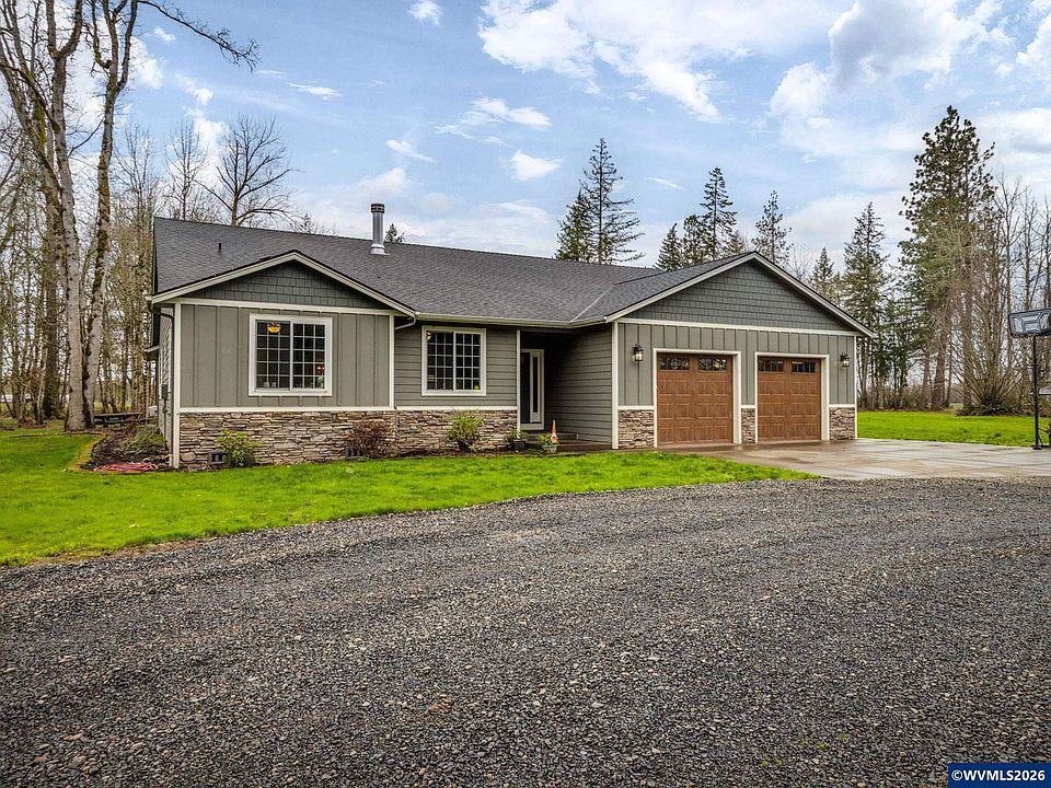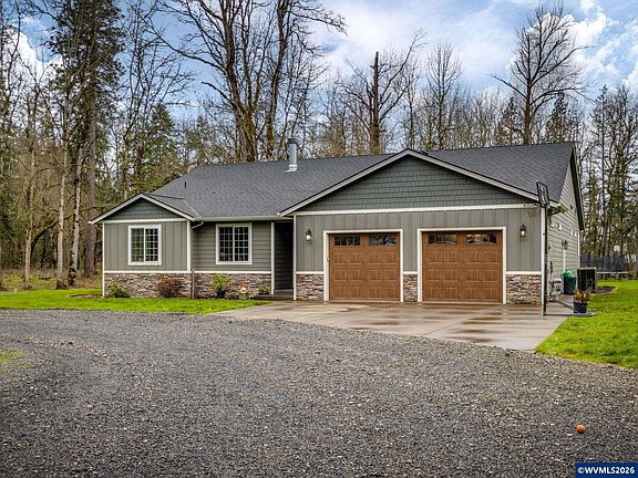 This beautiful custom home, located on over 15 level acres, has so much to offer! Featuring a very desirable one level floorplan with large vaulted great room, stone fireplace, laminate floors throughout, large open kitchen with huge eat island, granite, tile back-splash, painted cabinets, farm sink, and stainless appliances. The stunning primary suite features double sinks, large walk-in shower, walk-in closet, barn doors, and French doors to the back patio. The primary suite is separated from the other bedrooms, and opens to an amazing laundry room with lots of counter space and built-ins. This home has forced air heat, central AC, and also circulating hot water for instant warm water. Set up for all your outdoor living needs with a huge covered patio, expansive lawn, raised beds, large (60x40) shop/barn built in 2025, a lean-to (12x60), all this and set in a serene wooded location. Potential horse property. Private and set back off the road, yet this property is still just 5 minutes to town/school/shopping. This is truly a place you will love to call home!