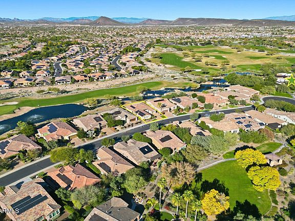 Experience elevated resort living in this former model home, ideally positioned on the coveted ''model row'' just steps from the Kiva Club in Trilogy at Vistancia. Designed to impress, this impeccably upgraded residence offers 2 bedrooms, 2.5 baths, a versatile den with a built-in Murphy bed, and a 2.5-car garage—perfect for full time living plus storage for your bikes and golf cart. Step outside to a true entertainer's dream: an extended covered patio adorned with travertine pavers, a striking fireplace wall, fire pit, and built-in BBQ. From here, enjoy breathtaking golf, lake, and mountain views, as the home sits gracefully along the water on the short Par 3 second hole—an exceptional and rarely available setting! The heart of the home showcases a beautifully updated kitchen...... with newer finishes, seamlessly flowing into refined living spaces highlighted by updated flooring throughout.