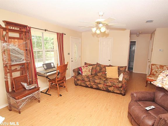 Great rare property opportunity in Vernant Park area near Magnolia Springs and Noltie Creek. 1.8 acres, lots of trees, mature satsuma, lemon, and fig trees. Large pole barn with concrete floor and big sliding door. 3 bedroom 2 bath home with Split bedroom floor plan, open concept living dining and kitchen area. Master bedroom has generous sized walk in closet, Master bath is conveniently connected to the laundry. There are a lot of cabinets and pantry for plenty of storage in the kitchen. Call for showing or additional information today!