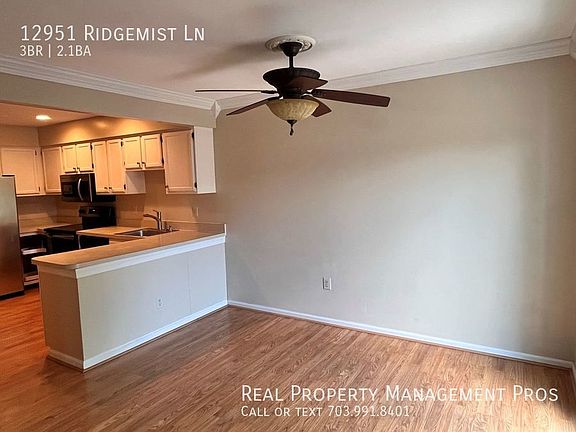 This 1845 square foot townhome home has 3 bedrooms and 2.5 bathrooms. This home is located at 12951 Ridgemist Ln, Fairfax, VA 22033.
