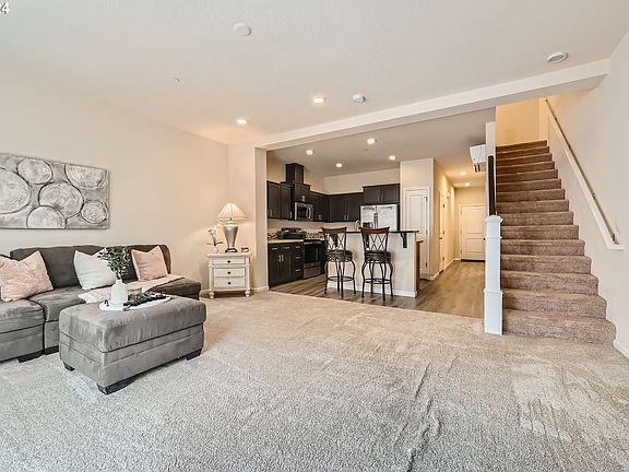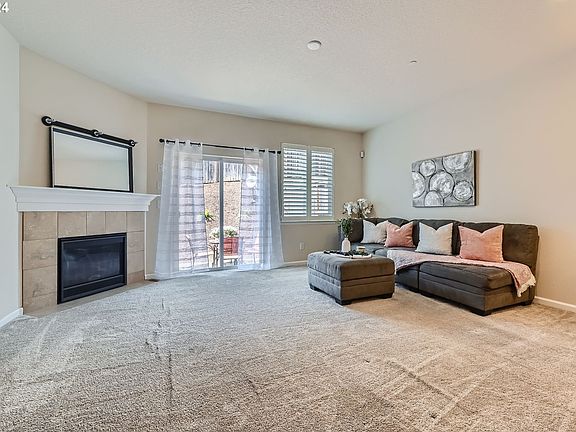 Welcome to this charming Townhome, nestled in the highly sought-after Morningside community! This meticulously maintained 3 bedroom, 2 1/2 bathroom residence offers a spacious entryway, a kitchen featuring stainless appliances, including a refrigerator, a pantry, an inviting island with a breakfast bar, and granite counter-tops, all seamlessly flowing into a cozy living room anchored by a gas fireplace. Retreat to the serene master suite, a full bathroom, two pristine bedrooms awaiting your personal touch, and french doors leading to the included washer/dryer and storage cabinets. Enjoy outdoor gatherings on the inviting patio with a freshly landscaped, low-maintenance fenced yard, or take a stroll along the nearby walking path to the Happy Valley Town Center; home to the esteemed New Seasons Market, shops, and delectable dining options. Front yard is maintained by HOA and has sprinklers. Move in ready with all appliances included. Don't let this opportunity slip away!