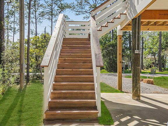 This beautiful NEW CONSTRUCTION home with 4 bedrooms, 2.5 baths, hardwood flooring all throughout home, custom finishes. Primary Bedroom on main level and 3 bedrooms upstairs, wrap around porch. Constructed on pillings allow parking for up to 6 vehicles. Lot is the size of a football field. Fortified Roof in progress of certification by builder.