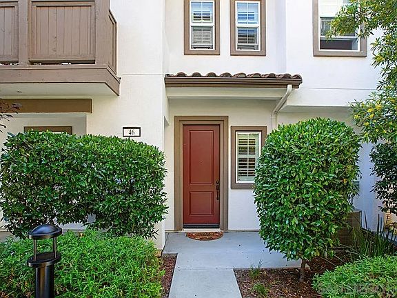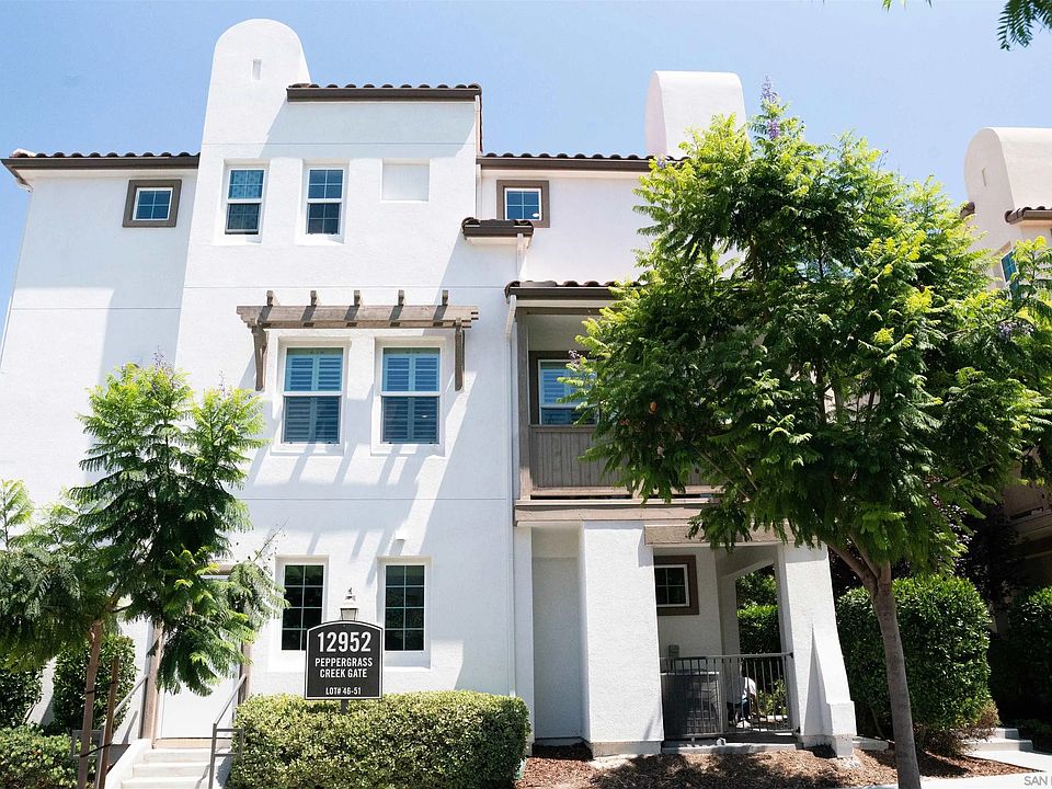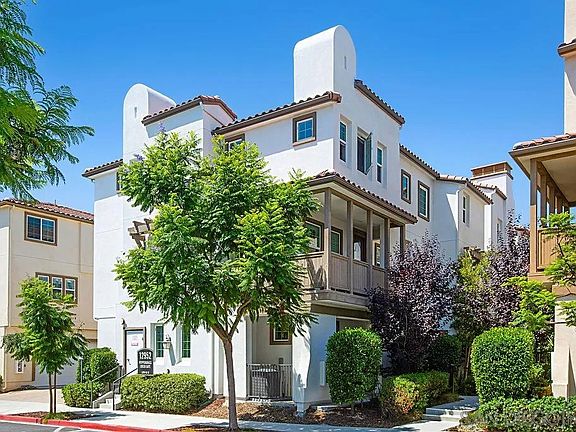 Sunny bright 3-story townhome located in the central vicinity of Pacific Highlands Ranch master planned community. This corner unit features 4 bedrooms including 1 bedroom with full bathroom downstairs, spacious great room & dining room, gourmet kitchen with white cabinets & all stainless steel appliances, one-year new refrigerator & microwave, quartz counter top, custom window treatments including shutter blinds & roller shades, Dual thermostats control upstairs & downstairs separately, full size wrap around balcony. Just a short walk to the PHR Village for shopping & dining, Trader Joe's, restaurants, banks, hospitals, city park, sports stadium, dog park, future new library, Pacific Trail Middle school & Canyon Crest Academy (CCA). A very quiet, convenient location, minutes to freeway, beaches!