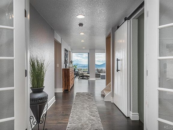 Spectacular 360 degree views of Pikes Peak and Mt. Evans and all the mountains in between! Very UPDATED modern mountain home on top of the world. Drive down the flat driveway to a completely remodeled home. All selections done with the upmost taste and modern appeal. Walk into a stone slab foyer with immediate access to the oversized garage & workshop and back yard. Walk down the hall to breathtaking views through floor to ceiling windows. Right off the Great room is a gourmet kitchen with walk in pantry and a new deck to enjoy morning coffee. In addition to a large dining area, there is a family room that connects to expansive decking with views. The upper floor has a large open den with fireplace just off the master suite including a private deck. The master suite includes 2 large walk in closets and a 5 piece bath. The lower level consists of 2 large bedrooms, a flex room with french doors (non conforming bedroom) and a bathroom. Right out the door is yet another deck. The lot has a flat area on the back for extra parking, a yard, or an additional storage building. There is a large workshop attached to the back of the garage as well a huge attic space with walk up stairs that serves as storage but can easily be converted to living space. Only 12 min to 285 with quick Denver access. Award winning schools, abundant wildlife - come live the dream!