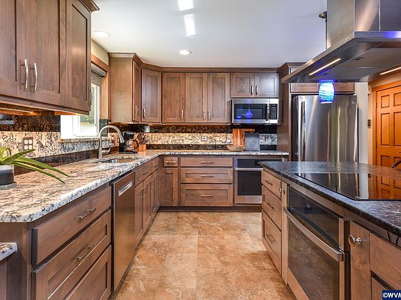 Completely updated. Open floorplan with new floor coverings. New kitchen with custom granite counters and cabinets. Bathrooms have granite surrounds. Updated electrical, plumbing, heating, cooling, water heater, windows, woodstove insert, insulation, roof, speakers. Wired for a generator. 24 X 48 shop with 2 - 12' doors. Property backs the Ankeny Game Reserve with views of Mt. Jefferson.