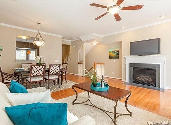 An immaculate 3 BDR, 3 .5 BA with over 2,300 SF Townhome waiting for someone to call it a home! A real gem, tucked in the heart of Blakeney, walking distance to shopping, restaurants and entertainment, minutes away from Stonecrest and 485 in a desirable school district. The subdivision offers pool and walking trails. End unit offers extra privacy and is also facing protected wooded area, very bright and inviting. Stainless steel appliances, tile floors in kitchen and all 4 baths, wood floors in living room and dining area, brand new washer and dryer included, Master suite has a large walk-in-closet, tray ceiling, dual basin vanity in bathroom. Lower level has a bedroom with a full bath and spacious family room. Plenty of parking with 2 designated spots and street parking. An absolute must see!