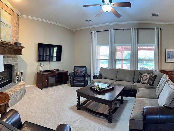 • Outdoor Living: Covered back patio (21’ x 9’), plus extended patio with pergola (21’ x 18’), and a large outdoor fireplace with a log holder. There's also a charming brick shed (21’ x 16’), providing versatile storage options.