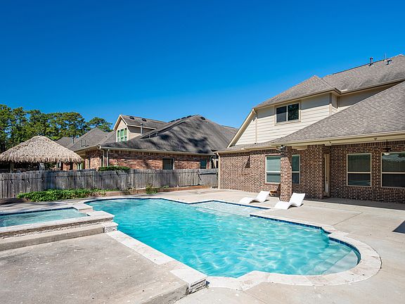Stunning home in the gated community of Parc Lake Estates with private pool, no back neighbors, and 3-car garage. Designed for comfort and elegance, this home features 2 primary suites with luxurious ensuite baths, perfect for guests or multi-generational living. All 4 bedrooms are on the main level, with a large game room and home theatre upstairs. The gourmet island kitchen boasts custom cabinetry, granite counters, and seamless flow to the family, dining, and breakfast areas. The main primary suite offers a spa-like bath with jetted tub and separate shower. A private study with French doors & built-in cabinet. Enjoy a sparkling pool and spacious covered deck for outdoor relaxation. Direct access to Cypress Park's trails and playgrounds. Zoned to acclaimed Cy-Fair ISD. Refrigerator, washer, and dryer included. Small pets welcome!