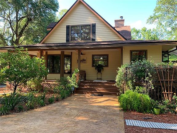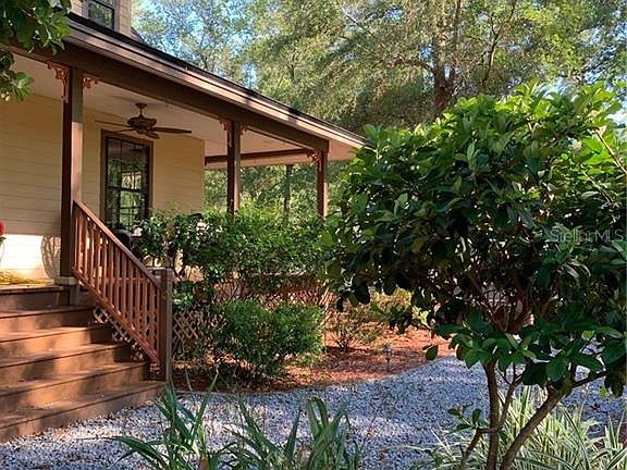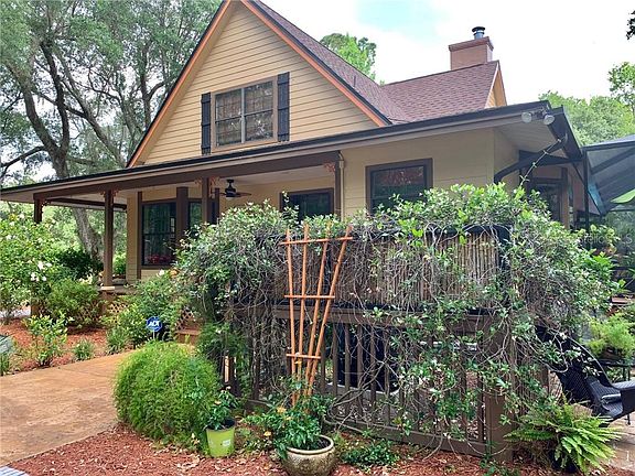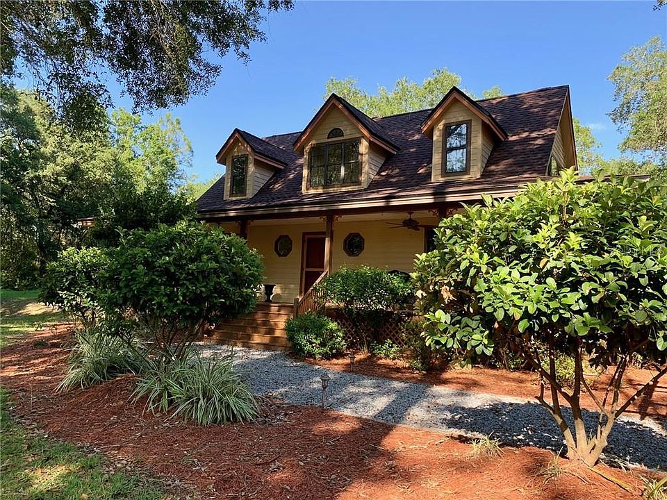 New England 2-story, Cape Farmhouse sits on this quiet 6+ acres. The 3 bedroom, 2 ½ bath is a craftsman charmer. It boasts 3-way wrap around roof over porches to enjoy the day without direct sun. This better than new Contractor home is completely redone with new roof, a/c & paint plus many extras too numerous to list. Beautiful finishes exist including extra trim and custom stone fireplace. Recent stainless appliances include induction stove top, refrigerator and W/D and a kitchen with lots of cabinets. It's eight closets, updated bathrooms and master suite include clawfoot tub and Italian marble shower. Landscaping galore and a screened lanai! Outdoor kitchen area has a KitchenAid grill, custom wood bar housed under a large gazebo plus a non-chlorinated pool with upgraded liner and pump all built into outside decking. Over 2,000 square feet of outdoor Florida living. There is a huge tool/storage shed ready for your hobby.