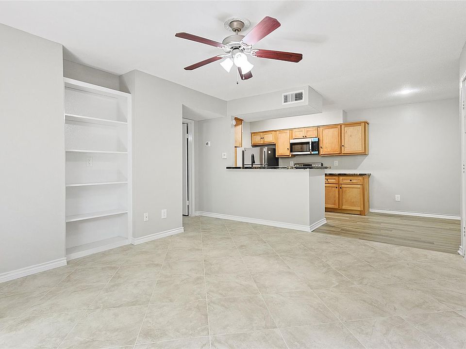 Fully Renovated ground floor 1-Bedroom Condo in Gated Community! This stylish, move-in-ready unit features a completely remodeled kitchen with stunning new cabinets, granite countertops, sink, faucet, and all-new stainless steel appliances, including refrigerator, cooktop, dishwasher, and microwave. Enjoy stone tile flooring throughout (no carpet) and fresh paint. The spacious bedroom offers a large walk-in closet, and the updated bathroom boasts a frameless glass shower and new cabinetry, plumbing and lighting fixtures. Large living room with built-in shelves and sliding glass doors that leads to a private patio. Located in a community with a sparkling pool and low monthly HOA fees, this home offers comfort, style, and convenience in every detail!