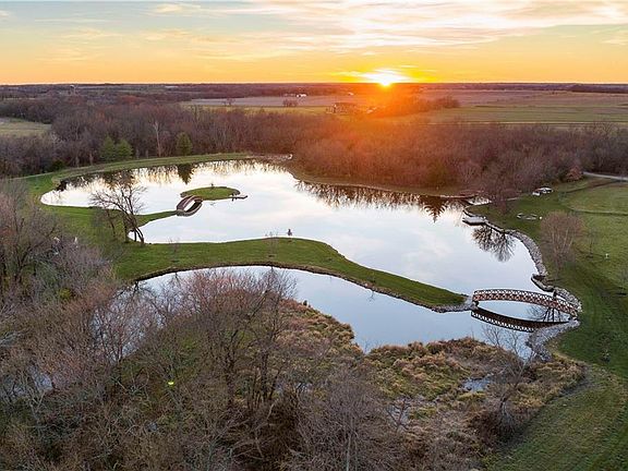 Nestled majestically on sprawling 79 ACRES M/L acres of meticulously manicured land, this extraordinary custom estate home stands as a true masterpiece of architectural brilliance and luxurious living. First drive over the private creek and bridge welcomes guests with open arms, offering a glimpse of the exceptional craftsmanship and attention to detail that soon awaits. The expansive foyer showcases amazing lake views and intricate moldings and wooden logs (brought in from Montana). From the gourmet chef's kitchen equipped with top-of-the-line appliances to the sumptuous owners suite boasting breathtaking views and usability. Multiple living spaces, dream acreage, lake with custom bridges to the Main House, Second Home and Barn are just a few of the exceptional amenities that ensure every moment spent in this home is nothing short of extraordinary. Outside, the grounds are a true oasis of tranquility, featuring lush landscaping, serene water views, and outdoor living spaces that beckon for al fresco dining and entertaining. Whether you're using the lake, strolling through the numerous trails (bike, hay ride, etc.) or enjoying time in your barn the beauty and serenity of this estate are unmatched. This is a rare gem that offers a lifestyle of unparalleled refinement and comfort, making it a place where dreams are brought to life and memories are made to last a lifetime. Radiant floor heat on the main level + elevator in the main home. Safe room, sauna and so much...Just minutes to all the city amenities!