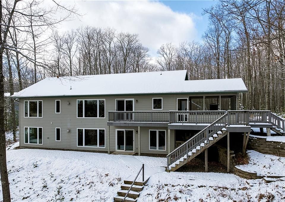 Hidden off a private, winding drive and just minutes from downtown Cable on a small, private lake is a pristine home with thoughtful design. 4+bedrooms, a primary suite on each floor, fireplaces up and down, a guest kitchenette on the lower level and windows nearly to the floor to maximize the lakeview from almost every room. Lakeside boast both a large deck, spacious screened porch and a built-in firepit, all great for entertaining. Nothing to do at this home but come and enjoy all the area has to offer.
