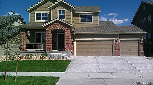BRAND NEW HOME W/BUILDER WARRANTY! GORGEOUS MAIN FLOOR MASTER! LOFT, 3 CAR GARAGE PLUS 1053 SQ.FT. FINISHED BASEMENT. LARGE BEDROOMS, STYLISH KITCHEN WITH STAINLESS STEEL AND GORGEOUS QUARTZ COUNTERTOPS. A/C, ENLARGED PATIO, GARAGE SERVICE DOOR, WEST FACING HOME. HOMEOWNER WILL ALSO ENJOY FRONT AND REAR YARDLANDSCAPING INSTALLED WITH SPRINKLER SYSTEM, 100% FENCE ON THIS BRAND NEW HOME IN PARKER. PHOTO IS REPRESENTATIVE OF SIMILAR MODEL - NOT OF ACTUAL HOME.