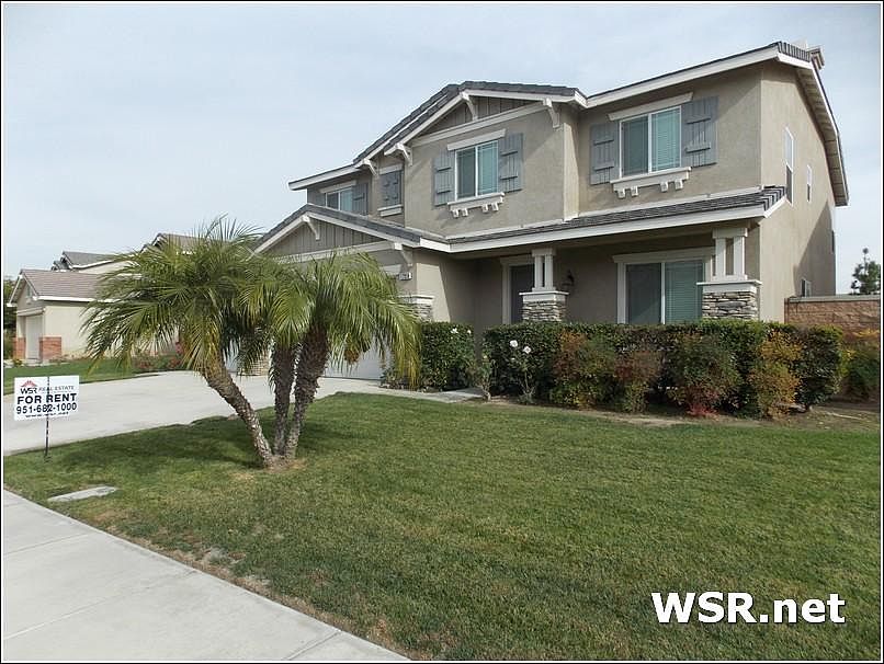 This large home features a separate living and family rooms and a large dining area. The kitchen features granite counter-tops and includes a stainless refrigerator. Upstairs features 4 bedrooms, 2 bathrooms, and a loft. This home is sure to please. Very close to the local elementary school. New paint and carpet throughout. Call today to schedule your showing. -- NO SMOKING -- Call 951-977-1309 To Schedule a showing. Approved pets OK with $250 additional deposit and $50/mo additional rent per pet.