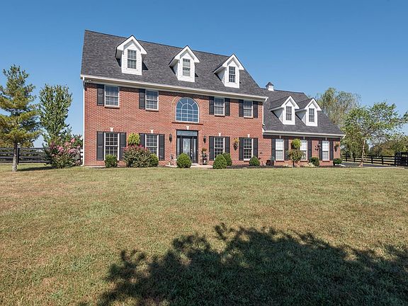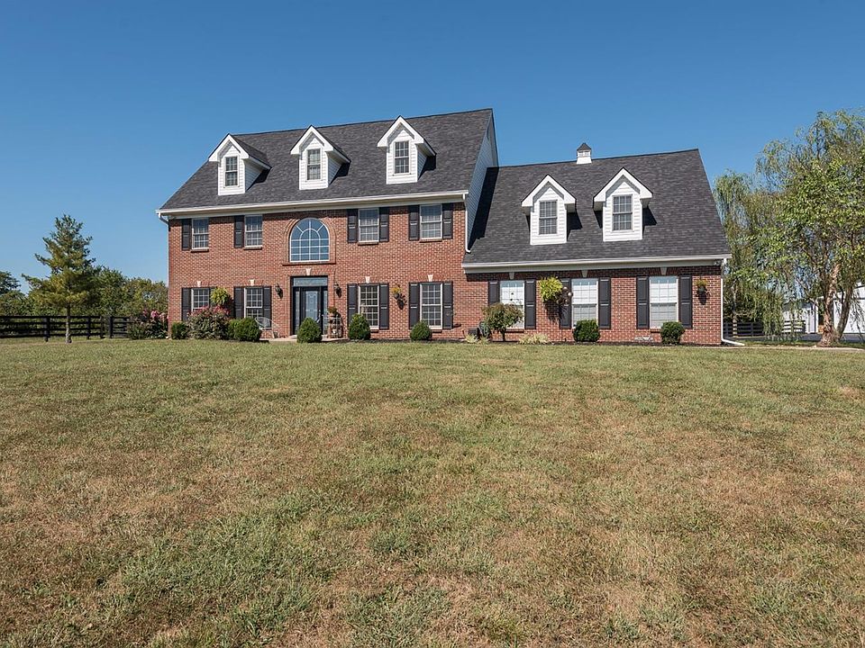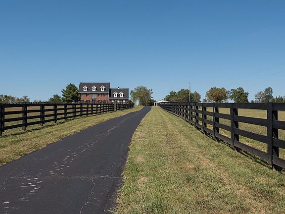 Luxurious custom built home with 3 stall barn, 30'x40' metal storage building or workshop, run-in-shed, round pen, and 5 fully fenced acres in Versailles. A long paved driveway leads to the 2.5 story brick home that sits far off the road. This delightfully unique home has 3 options for the Master Bedroom Suite. The well appointed kitchen features granite counters, natural stone flooring and back splash, stainless appliances, 2 wine coolers, Cherry cabinets & pantry. There is a private second staircase off the kitchen going to an upstairs guest suite with fireplace and tiled bathroom. There is a large mud room off the garage with laundry area. The great room has a gas fireplace flanked by french doors leading to the rear patio. The 2nd level has the Master Bedroom Suite with large walk in closet and stunning bathroom, a family room with incredible views through the 2 palladium windows and another bedroom & lovely blue tiled hall bathroom. The 3rd level has a large bedroom suite. Owne