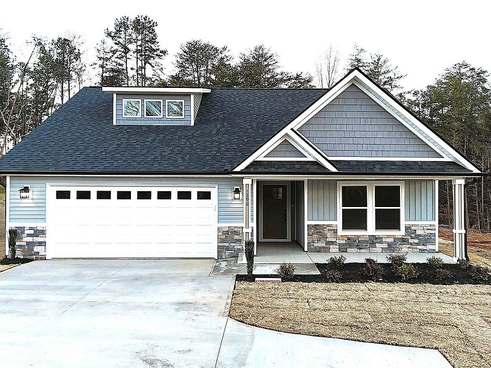 Brand New Construction in Gaffney, SC! This home features 3 bedrooms, 2 full bathrooms. Double garage and no HOA fees! Inside, you'll find an open living concept with a split bedroom plan. The owner's suite is large enough for king-sized furniture and has a walk-in closet with wood shelving. The private bathroom has double sinks, soaking tub & separate walk in shower, a linen closet, and a private water closet. The secondary bedrooms are large enough for queen-sized furniture and have good-sized closets. Laundry room with wood shelving and storage. Outside, there's a covered rear porch that overlooks the large, level backyard. The location is within 3 miles of I-85, so you can be in Charlotte, NC in about an hour. This is a well-established neighborhood with no HOA fees.