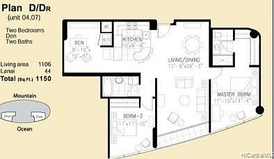 One of the most popular high rise condo near Ala Moana Shopping Center. Strong demand on high floor 07 unit. 2 bedroom plus den (can be used as office space) and 2 bathroom and 2 side by side parking stalls. No carpet. Flooring throughout the unit. View View View of ocean. far end/ocean side corner unit. Away from elevator, away from trash chute. Looking for a long term tenant. Note: the unit is not furnished. currently tenant occupied