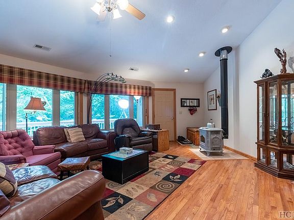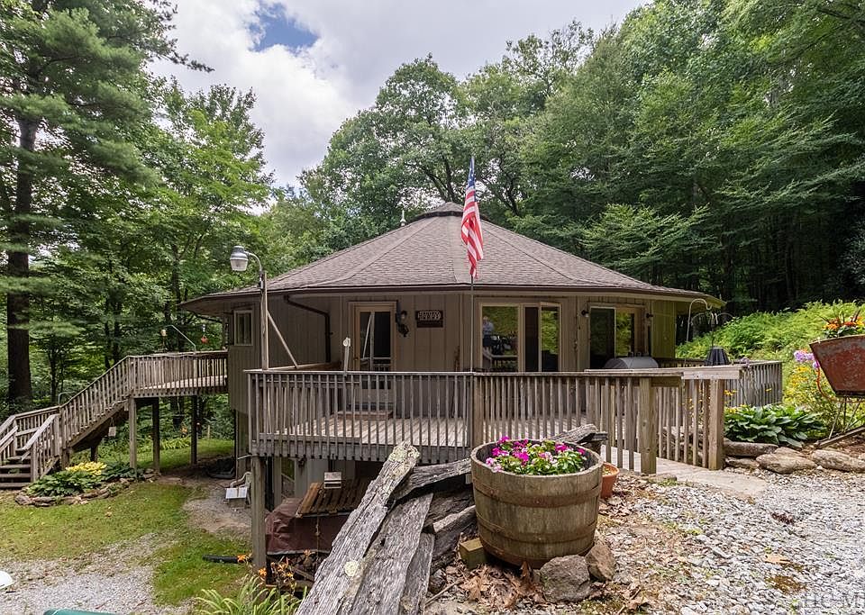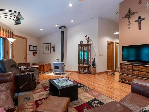 Beautiful, full size, well maintained unique home. Level entry to main and basement levels with split driveway. Extremely private location at over 4,000 foot elevation. Cool breezes all summer.Beautiful views of nature from every window. Very light restrictions and no fees, This home also includes two additional parcels for a total of 5.25 acres. Two large decks wrap the house for outdoor enjoyment. Open floor plan with large kitchen with movable island. Hardwood floors in great room with wood burning stove. Kitchen is tiled. Bedrooms are carpeted. Utility room has washer and dryer plus lots of storage. Master bathroom has oversized jetted tub as well as shower. Central heat and A/C. Internet and cellphone reception. Basement is prepped for possible completion. Workshop already done. Low maintenance yard with garden areas on two levels. Lots of room to park your RV, ATV, or boat. Close to Lake Glenville. Less than a mile from Yellow Mountain. Easy drive to Cashiers, Franklin, Highlands, and Sylva. Come enjoy the sights and sounds of nature at it's finest.