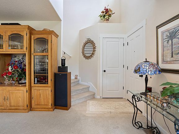 Immaculate light and bright home with incredible view! This well cared for home on quiet cul-de-sac offers tall ceilings throughout, open floor plan with sizable kitchen to spacious great room. Kitchen has tile floors/countertops, stainless refrigerator and bosch dishwasher. Large primary bedroom with walk in closet and dual vanities. Laundry conveniently located next to bedrooms and .5 bath on main floor. Covered back patio with updated landscaping and fountain. Central AC and tandem 3 car garage.