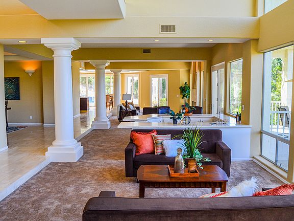 Perched on one of the highest lots in this exclusive, gated community sits a one of a kind custom built luxury estate on 3.9 acres. Spectacular Views from almost everywhere inside and out. Large windows capture tons of light. Watch hummingbirds chase each other from one of your 3 decks. Between the parklike front yard and the wild hillside beyond, you will feel like you're a part of nature. This 4Bd/4Ba Homestead and office and open entertainment area includes a wetbar, fireplace, pool, BBQ & Veranda.