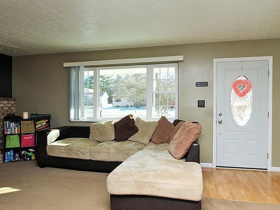 Beautiful all brick 3 bedroom, 1 bath ranch! Updates include furnace, water heater, well pump, garage door and opener, front exterior door, windows & more! A covered front porch welcomes you in to an inviting living room with woodburning brick surround fireplace that opens up to the dining room which offers sliding glass doors to the 12x16 vinyl deck that overlooks the backyard. Adorable kitchen with newer laminate flooring. Three bedrooms each with a ceiling fan. A two car garage with opener & 2 sheds.