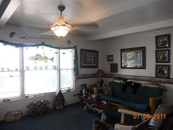 Check out this unique lot! Lots of lake front! Quiet location at the end of dead end road. Year round home, very cute. The 3 season room adds lots of summer living space. Enjoy the big deck & finished boat house by the water! Laundry in detached shed. Newer detached triple garage. Plus single includes 2 docks & 4 lifts!