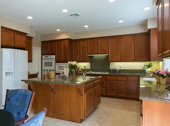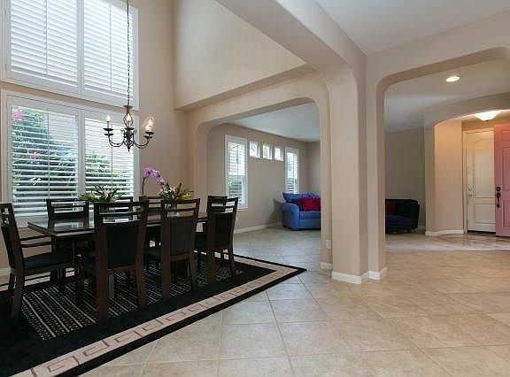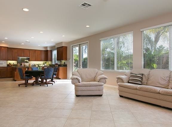 This home in the Seabreeze Farms neighborhood has a wonderful and ample floor plan with 5 bedrooms plus an optional bedroom downstairs. The living room blends into the formal dining room allowing the homeowners to accommodate a larger dining table depending on what their needs are. It includes a large kitchen with an oversized island that holds an extra sink and a huge pantry plus a large butlers pantry era with another separate sink and storage closet. U[stairs you will find the master bedroom with a sitting area, upgraded master bath with dual sinks, a bath and a shower, his and hers closets, and four other bedrooms with jack and jill bathroom's. There are two separate garages one for three cars and the other one is a single car garage. The home is very conveniently located less than two homes away to the access to a back road that leads to Sycamore Elementary, one of the 8 schools of Del Mar Union School District, it is also close to parks, shopping and even horse trails.