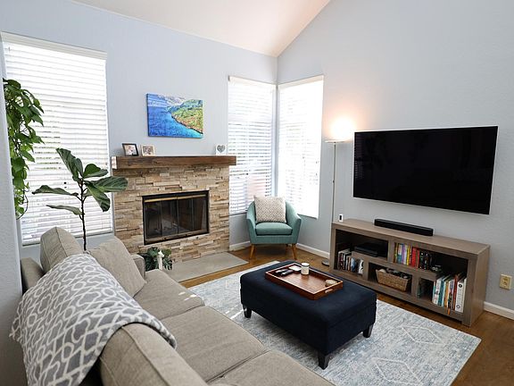 Charming End Unit in highly sought Halcyon community. Vaulted ceiling, large windows and open floor plan make it bright and spacious. Beautifully upgraded with hardwood floor throughout, cozy fireplace, modern kitchen with quartz countertops, Blanco silgranit sink and stainless steel appliances. Newly renovated bathrooms with brand new fixtures throughout. In-unit washer/dryer. Large garage offers side-by-side 2 car parking, electric vehicle charger and extra room for storage. Sunny patio with gas BBQ hook-up offering gracious welcome to family and friends. Community features include resort style pool/jacuzzi and poolside lounge area. Walking distance to One Paseo, Del Mar Highlands, Sky Deck, award winning Carmel Valley schools, parks, library, and Carmel Valley Recreation Center. Viewings are by appointment only - please fill out an application and we can schedule your visit today! Owner pays for water, trash/sewage. No smoking, no pets. Looking for long-term renters. Attached 2 car parking garage with extra storage space, guest parking throughout the complex.