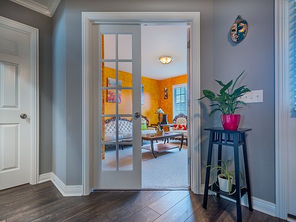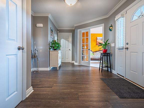 - AMENITIES: Ceiling Fan(s), Detector-Smoke, Porch Covered, Main Floor Laundry, Breakfast Bar, Cable Ready, Eat-In Kitchen, Garage Door Opener, Main Level Bedroom Suite, Closet(s) Walk-in, Disposal, Dryer Hook Up Electric, Landscaped, Pantry-Walk In, Attic Pull Down Stairs, Ceiling-9+, Alarm System-Security, Countertops-Solid Surf, Attic Storage, Foyer Entry, Custom Cabinetry