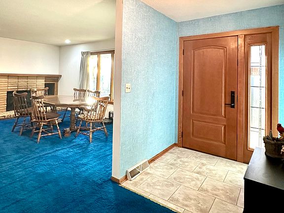 YO, listen up here's a story about a little house that lives in a BLUE world...well, at least in a BLUE CARPET world! You'll have a hard time finding vintage carpet this vibrant. The fun doesn't stop there with a classic yellow kitchen and blue bathroom counters!