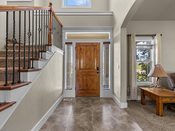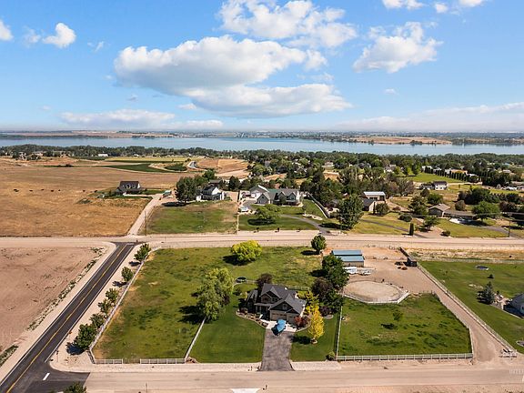 Enjoy the breathtaking views of the rolling hills that surround this stunning 3-acre property. This exquisite home welcomes you with a 2-story, bright entryway leading into an open floorplan. The kitchen flows seamlessly into the spacious living room with a large fireplace. The main floor master suite features separated double vanities and a relaxing soaker tub. Upstairs, you'll find three additional bedrooms and a generous bonus room. The fenced-in yard is perfect for outdoor living and entertaining, boasting a fire pit area, covered patio, and mature landscaping including Bing Cherry trees. Beyond the yard are two fully irrigated pastures along with a versatile shop featuring its own driveway. The shop includes three horse stalls, a wash station, tack room, storage loft, parking, and is equipped with electricity and water. With plenty of space for gardening and ready for your horses and animals, this country home is a true gem. Its proximity to Lake Lowell offers endless boating and fishing opportunities.