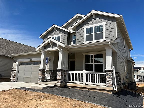 Available in August 2023! This gorgeous 2-story Ashbrook in Reunion Ridge 3 beds, 3.5 baths, dining & great rooms, study, loft, kitchen, unfinished basement for future expansion & 3 (2 + 1 tandem) car garage. Beautiful upgrades and finishes throughout including luxury vinyl plank floors, stainless steel appliances, slab quartz counters, extended covered deck and more. Lennar seamlessly blended & showcased the unparalleled beauty of Colorado with the most innovative homes, energy efficient technologies & modern conveniences, bringing the best of both worlds together. Each plan is thoughtfully designed to combine elegance & luxury together with hi-tech energy efficient features. What some builders consider high-end upgrades, Lennar makes standard.This community offers single family homes for every lifestyle. Close to dining, shopping, entertainment and other amenities. Easy commute to DIA, Downtown Denver, Golden, Boulder & beyond. Come see what you have been missing today! Don’t wait – this community will sell out quickly! Located in a metro district. Photos and walkthrough tour are model only and subject to change.
