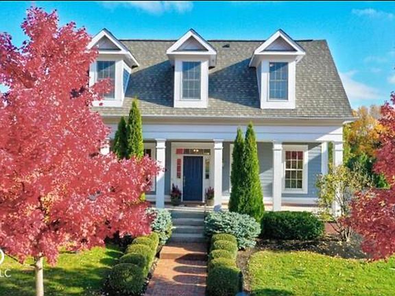 Nestled in the picturesque Village of WestClay, this stunning custom built home exudes charm and elegance. The home is perfectly situated in a prime location on Hidden Pond, offering peaceful, serene water views. Inside, the main level showcases warm hardwood floors, crown molding, and beautiful architectural details. The open floor plan includes a spacious office/den with built-ins, large formal dining room, and a great room that features soaring vaulted ceilings and a cozy wood burning fireplace. The kitchen has stainless steel appliances, gas range, a large walk in pantry, under cabinet lighting, and granite counters. The main level primary suite is a private retreat with new custom built-ins, large walk in closet, access to the adjoining sunroom that overlooks Hidden Pond, as well as access to the covered side porch. The primary bathroom features a clawfoot soaking tub and separate (huge!) shower. Unwind and enjoy the tranquil views of Hidden Pond from the enclosed sunroom featuring large skylights, or from the oversized hot tub on the back deck. Upstairs, you'll find two large bedrooms, a full bathroom with separate vanities, and a spacious loft perfect for an office or playroom. Additionally, a large unfinished attic offers potential for finishing out or for extra storage. The lower level features a spacious recreation area complete with gas fireplace and is plumbed for a bar. Additionally, there are two bedrooms, a full bathroom, and a generously sized unfinished area with hookups for a second washer and dryer, utility sink, and ample built in shelving for storage. A convenient back staircase leads up to a second sunroom, offering access to the garage, the outdoors, and to the main level of the home. The side load three car garage features two separate service doors, a wall of built-in shelving, and extended bump outs for even more storage space. This home is a true hidden gem, a must-see!