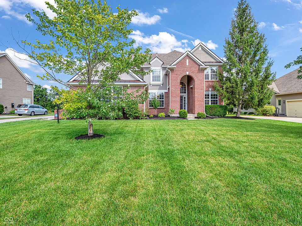 Exceptional 5 bed, 4 full bath home in sought after Hayden Run community in west Carmel! Open high ceiling foyer leads you to spacious dining & living rm, grand two story family rm w/ cozy fp overlooks open kitchen w/ granite countertop, SS appliances, 42" upgraded cabinets, WI pantry, hardwood flooring, main level bedroom w/ full bath; Dual sided stairs to upstairs, large master suite has tray ceiling, huge bathroom w/ double sink, garden tub, separate shower & 2 large WIC, 3 additional good sized beds, hall bath w/ double sink; Finished basement has huge play area meets all your entertainment needs, a wet bar & full bath! Side load 3 car garage; Private, quiet backyard has beautiful view of trees, grass & pond, great lot! Well maintained home w/ brand new carpet(m/u), Washer & dryer 2018, Oven/range/microwave 2022, Refrigerator 2022, Basement refrigerator 2023, Water softener 2020, Sump pump 2021. Home close to parks, shops, highway & everything, great Carmel Clay Schools, excellent opportunity, must see!