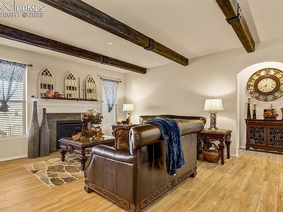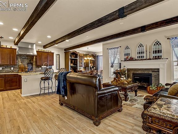 An impeccable take on Campbell’s massively popular Kipling floor plan, this is the one you’ve been looking for! Nestled in the heart of Meridian Ranch and backing to open space, settle in as this one pours on the love over and over. The main level is spoiled with luxury vinyl plank flooring throughout, ceilings literally beaming with faux wood beams, whole home audio pre-wiring for all of your music needs, and the most inviting gas fireplace that screams “I got you covered in this Colorado weather!”. The eat-in gourmet kitchen is ready to knock out anything your creative chef’s mind can dream of, the owner’s suite includes the sleekest bathroom ever with an epic walk-in shower, and the rear covered patio features a built-in gas line so you never have to stop in the middle of your party to run out for propane! Downstairs is just magical with 9 foot ceilings, more speaker pre-wire but this time for that 5.1 surround system of your dreams, two perfectly tucked away bedrooms that could easily double as workout or hobby rooms, and even plumbing for a future wet bar! With a 3 car garage that features generous storage space, elegantly designed landscaping which includes stamped concrete leading to the cozy backyard and solar accent lighting, and electrical outlets up in the soffits that are just aching for your decorating vibe, what else do you need? OH! You need the keys!