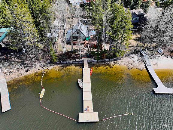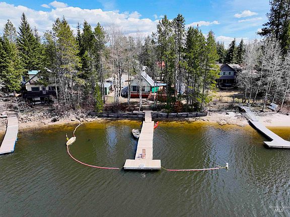 Classic lakefront cabin with a private dock. This well cared for property is very private and has over 100 feet of Lake Cascade frontage. The cabin is clean and rustic and is easily heated with a large wood stove. Step out of the kitchen onto the covered deck with sweeping mountain views over the lake of Tamarack Resort, No Business Lookout, and Brundage Mountain. The deck wraps around the home to even more space for entertaining and relaxing by the lake. In the winter cozy up by the wood stove and check the runs at Tamarack with just a glance before you make the quick 15 minute trip over or ride your snowmobile there across the lake. In summer, enjoy BBQs lakeside then take to the boat for a sunset cruise. The property has covered wood storage, backup generator connection, RV parking with electrical hook up, two sheds and even more storage under the deck. The cabin is set back on the lot allowing for tons of parking and plenty of potential to add on to the existing home or build additional structures.