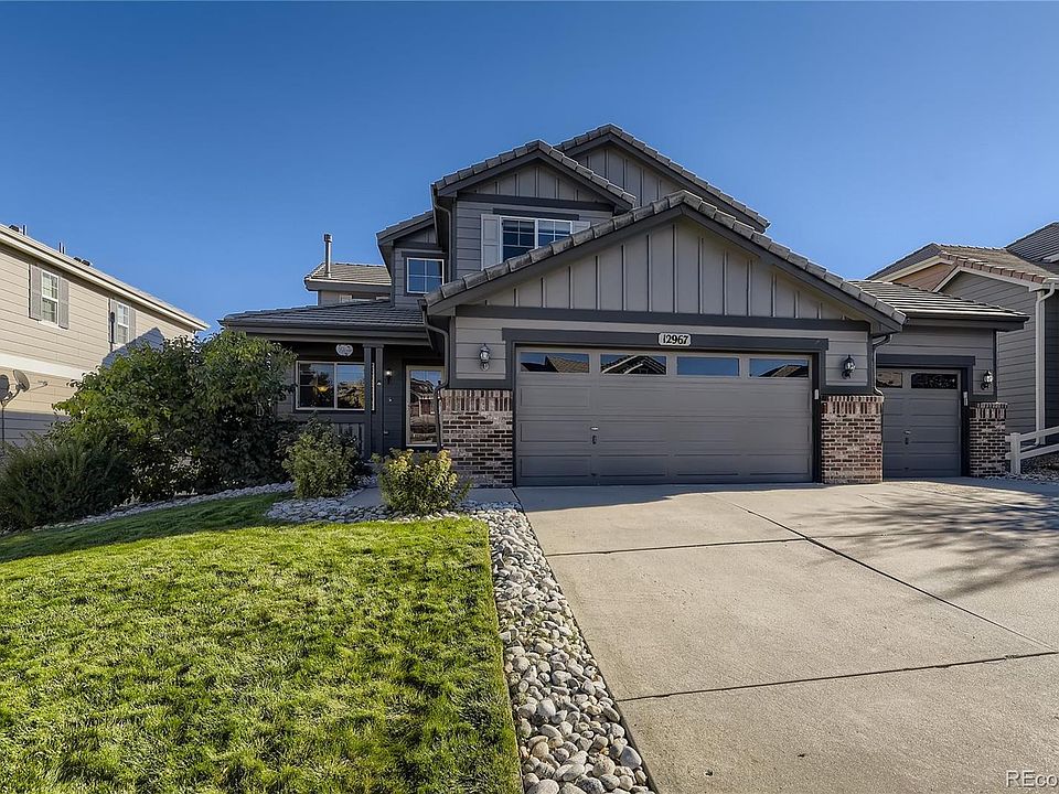 plank flooring, and modern upgrades throughout. The spacious great room at the front of the home leads seamlessly into the open-concept kitchen, dining, and living room areas making this space perfect for entertaining. The fully appointed kitchen features high-end stainless steel appliances, chic cabinetry, quartz countertops, and a large kitchen island with plenty of seating for everyone. Cozy up in the living room next to the gas fireplace with a stone surround on a beautiful wood-accented wall. The main floor bedroom features an en-suite bathroom for a private guest suite or home office space. Upstairs, the primary bedroom is supremely situated on one side of the hall ensuring a truly luxurious retreat. Dual oversized walk-in closets provide ample storage, and the five-piece en-suite bathroom offers an everyday spa-like experience. Three additional sunny and generously-sized bedrooms are on the other side of the upper floor, with a full bathroom and laundry room conveniently located upstairs as well. The unfinished basement provides even more square footage for an exercise room, ample storage space, or room to grow! Soak up Colorado's 300 days of sunshine on the back patio, or play fetch with Fido on the pet-friendly backyard turf! Enjoy use of the fantastic community amenities including the pool, clubhouse, park, and playground just minutes from your door! Moments away from shopping, dining, and more, this home can't be missed!