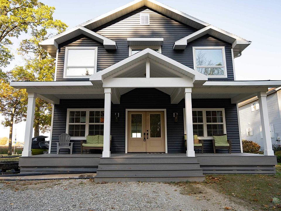Experience the perfect blend of luxury and nature in this new construction on Syracuse Lake. Situated on a spacious, level lot with 90 feet of frontage, this home offers effortless access to the water—just steps from your door. This new home features 6 bedrooms, 5 full bathrooms and 3 living areas providing ample space for family and guests. With construction still underway, you have the unique opportunity to make custom selections and finish the home to your exact tastes. Enjoy the lake views and a natural landscape creating a peaceful setting ideal for wildlife watching. Whether you're entertaining or unwinding, this property offers a serene, scenic retreat. Close to town, shopping, restaurants and walking trails. Don’t miss your chance to own this beautiful lakefront haven—schedule your showing today and start planning your dream lakeside lifestyle!