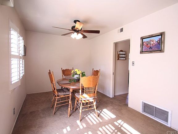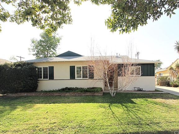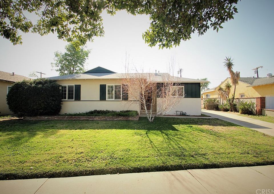 This beautifully maintained home located on a quiet tree line street in Sylmar offers 3 bedrooms 2 baths in 1259 square feet on an almost 6400 lot built in 1956. This home offers a tiled floor entry leading to the light and bright livingroom with smooth ceilings, angled wood burning fireplace with brick front and hearth and oversized sliding glass door leading to cover rear patio with lush yard. The adjacent cozy dining area has ceiling fan and plantation shutters. The remodeled kitchen has tile floors, oak cabinets, stainless steel appliances, granite countertops, ceiling fan and an indoor laundry area. There is a master bedroom suite with attached bath and newer vanity. Two additional bedrooms feature smooth ceiling, plantation shutters and ceiling fans with an adjacent hall bath. Outside is a detached 2 car garage at the end of a long driveway with a newer rollup garage door, 2 separate covered patios and sizable lawn area. This home also features vinyl windows, smooth ceilings throughout and copper plumbing. Centrally located this home is walking distance to restaurants and shopping. Mission College and El Cariso Golf course are close by and so much more.