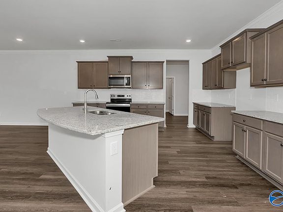 - Features: 9’ Ceiling, Crown Molding, Eat-in Kitchen, Granite Counters, Kitchen Island, Pantry, Sitting Area, Smooth Ceiling, LVP
