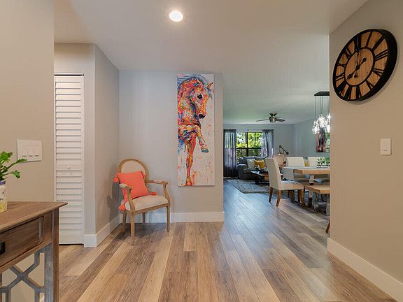 The moment you walk in, the stunning and breathtaking apartment will captivate you! From its entrance door to the covered patio, this apartment is unique in its kind. The kitchen has been renovated featuring gorgeous blue maple cabinets, with white quartz counter top, and stainless steel appliances. Four maple shelves complete the spectacular design to make this kitchen one hard to forget. The master bathroom was also updated featuring a glass door, two sinks, and ample space to provide its residents a unique experience. Restoration hardware nightstand lamps and one-o-a-kind barn door complements the master bedroom. Accordion shutters all throughout. This unit has been remodeled to perfection to indulge the most sophisticated buyer! Schedule showings online.