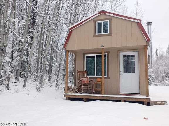 Gorgeous, brand new construction off grid dry cabin with bath house! Never lived in, all brand new and fully furnished! Come cozy up next to the wood stove in your own private getaway and take in the views of the area! On 1.19 acres, there is plenty of room to expand, have a hobby farm, add more cabins, whatever your dreams are made of! Electricity is at the road for easy hook up, if desired!Cabin includes a full kitchen with all new appliances, a wood stove to warm up to, a generator for power, clawfoot tub in the bath house, flush portable toilet with water tank and black water storage! This is a must see! 12'x24' Brand New Home Features: Full kitchen with all New Appliances! Dry Sink with Hot water tank Refrigerator Breakfast Station 4 Burner Propane Cook Top Rolling Kitchen Island with Fold Out Leaf. Cast Iron Pan Fire Extinguisher Convertible Living Room/ King Bedroom Loft Queen Bedroom Loft Twin Bedroom Bedding Sets for all Beds Woodstove Generator All Furniture Included Wood Porch 4'x12' 8'x 8' Brand New Bath House/Outhouse Full Bathroom Claw Foot Bathtub On Demand Propane Hot Water Heater Shower Head Flush Portable Toilet w/Water Tank and Black Water Storage Vanity with Mirror Dry Sink with Water Storage Tank Storage Shelves Wood Deck 8'x8' Picnic Table area. Hauled water system. Plenty of room to add other out buildings, gardening and hobby farm. Roses, cranberries, raspberries, fireweed, elderberry on property. Bolete and Morel mushrooms on property. Lots of wildlife! Moose and Bear in the area. Minutes from Goose Creek, Fish Creek Susitna River, Little Su, and Big Lake. Salmon and trout fishing at Fish Creek. Minutes from public recreation areas. Minutes from Knik Arm. 45 minutes from downtown Wasilla. 30 minutes from gas and groceries. 90 minutes from Anchorage by car. 3 hours from Denali National Park. Would make a great recreational cabin, Air bnb or tiny home/hobby farm. Owner financing available. Escrow setup through First National Bank of Alaska. 30k down, 7% over 7yrs. Near Point Mackenzie Rd and Goose Creek Rd