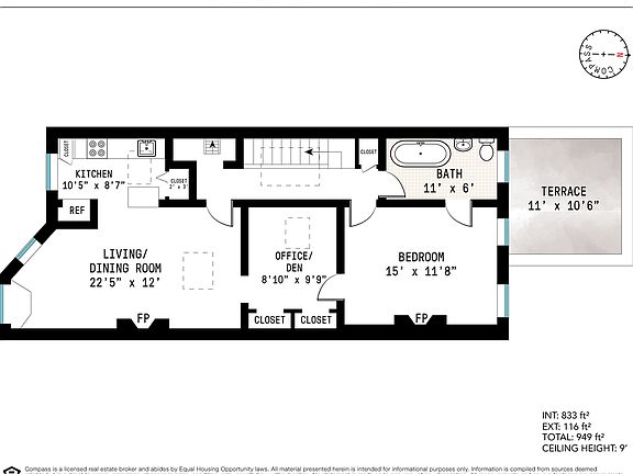 NEW TO MARKET: 1 Bedroom + Home Office/Den Private Terrace Floor-Through Apartment on Treelined Block 3 Skylights 2 Decorative Fireplaces Top floor (3) Pets are ok upon approval. Showing by appointment only.