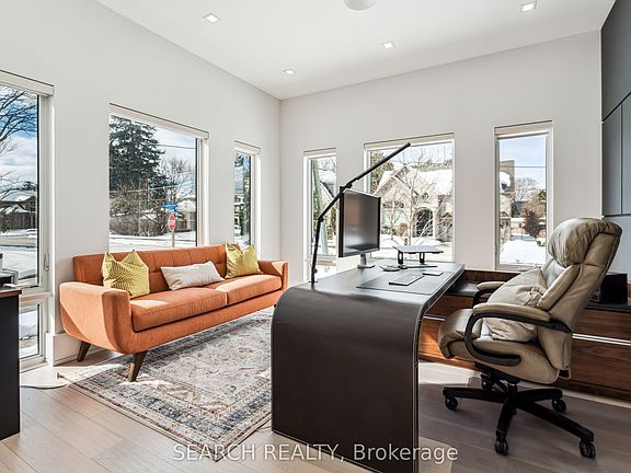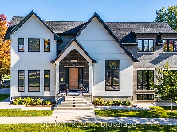 Experience Unparalleled Luxury at Canterbury Road. Nestled in the prestigious Mineola community, an area poised for continued growth, this exquisite residence offers the perfect blend of modern sophistication and functional luxury. Ideally situated near vibrant Port Credit, you'll enjoy access to top-rated schools, wellness centers, and a wealth of amenities, ensuring a balanced and convenient lifestyle. This architectural masterpiece boasts 5,164 sq. ft. of finished living space (3,554 sq. ft. above grade), meticulously designed with high-end finishes and an abundance of natural light. The open-concept layout seamlessly connects the kitchen, breakfast nook, family room, and dining room, perfect for entertaining. A striking two-way linear fireplace tastefully separates the family and dining areas, while soaring 10' and 20' vaulted ceilings create an airy, grand atmosphere. A statement glass-railed staircase sets the tone for refined elegance throughout. At the heart of the home is a chef's dream kitchen, thoughtfully designed with premium finishes, high-end Jenn Air appliances, a butler's pantry, and custom-built storage for seamless organization. The primary suite is a private retreat, featuring a linear fireplace, spa-inspired ensuite, steam shower, freestanding soaking tub, dual rainfall showerheads, and dual vanities, a true oasis of relaxation. Luxury extends to the finished basement, complete with heated floors, a custom bar with a center island, and open-concept living spaces. Step outside to your backyard oasis, offering ample space for a future pool. A rare opportunity to own a home that flawlessly blends style, comfort, and sophistication.