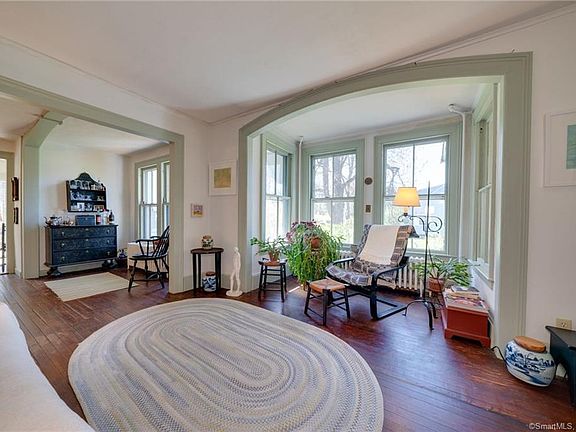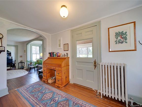 "TWIN SPRUCES" is the name of this charming Circa 1800 farmhouse situated on 1.57 acres of estate like grounds. Named after the beautiful blue spruce trees that grace the entrance (only one has survived) Hard to find this "rare gem" so conveniently located with city utilities. Many historic features such as 2 over 2 windows,paneled doors,intricate hardware &curved moldings are still present in the home. Spacious and unique floor plan is ideal for entertaining especially at holidays.This home was always filled with music! On a sunny day natural light creates a warm inviting feeling.Cast iron radiators provide even heat. Beautiful hardwood floors with natural "patina" are found throughout. Country kitchen is indicative of the period& boasts views of the yard and gardens. Cozy area for a bistro table for informal meals. Pantry/mud room is perfect when bringing in groceries. Enjoy the centerpiece of the home, the formal dining area with room to serve a dozen or more. Wonderful three seasons porch is an absolute treat with it's 180 degree view. Ideal for relaxing with a book or enjoying gathering after dinner. Upstairs sleeping quarters has a master bedroom plus 2 additional bedrooms and a 4th room great for a nursery or off season closet. If you love working and playing outdoors, the spectacular grounds features an extensive array of gardens and vine arbor especially during the late spring/early summer. Woodworking shop set back in the woods is great for hobbyists or collectors.