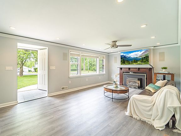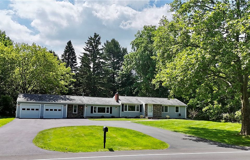 Nestled on 1.1 lush acres amid million dollar estates, steps from the breathtaking vistas of Lake Ontario & picturesque Webster Park this modern gem boasts over $150k in enhancements and move-in ready convenience. As you step inside, the great room welcomes with an abundance of natural light dancing through expansive windows, illuminating the space and highlighting the sleek lines of modern design. A cozy gas fireplace beckons on chilly evenings. 4 spacious bedrooms, adorned in soothing neutral tones offer serene retreats. The eat-in kitchen dazzles with granite countertops, sleek cabinetry, and stainless steel appliances. An adjacent in-law suite complete with a kitchenette & private entrance is perfect for guests or multi-generational living. The family room enhances gatherings with a gas fireplace & a rustic touch from exposed overhead beams. Sliding glass doors lead to a private backyard oasis, complete with a bespoke stamped concrete patio, fire pit & hot tub. The finished lower level presents endless possibilities for a home theater, fitness center, or rec room. Unwind in this fabulous residence that seamlessly blends modern comfort with natural beauty.