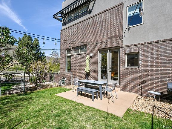 Beautiful and updated 2 bedroom, 3 bathroom townhouse in the heart of Golden! This end-unit home offers mountain views, abundant natural lighting, a private side yard with patio, a second front patio and is just steps away from Downtown Golden. Upon entering the main floor you'll be greeted with sprawling red oak hardwood floors, floor to ceiling windows and vaulted ceilings. The cozy living room features a gas fireplace that flows into the dining room and kitchen with granite countertops and a walk-in pantry. A convenient 1/2 bathroom on the main floor. Up one level boasts the 1st bedroom with full bathroom and continuing up another level is the primary suite with en suite primary bathroom and walk-in closet. The top floor boasts the loft with laundry area and access to your rooftop patio. Relax on the rooftop and enjoy Golden's stunning views and scenery. The finished basement features a flex room that could be a workshop, office or gym area with access to your attached 2 car garage. Enjoy an additional reserved parking space next to your fenced-in side yard with separate entrance as well as two guest parking permits for residents of the City of Golden. Breathtaking views of Lookout Mountain, North Table Mountain, and South Table Mountain right from your doorstep! Downtown Golden is just blocks away, where you can enjoy charming shops, dining options, and cultural attractions. Easy access to Clear Creek Trail system, perfect for walking, jogging, biking, and kayaking. Conveniently located near the renowned Colorado School of Mines. Don't miss your chance to own a slice of paradise in the heart of Golden's historic district! Schedule a showing today!