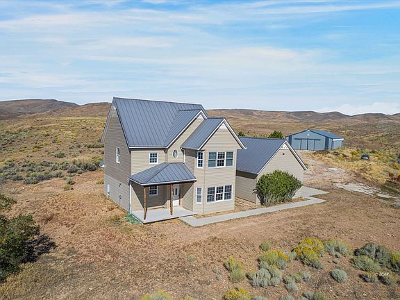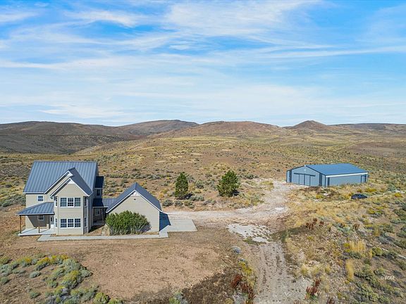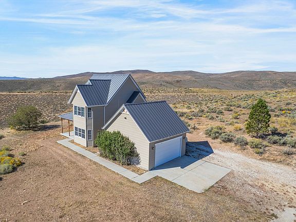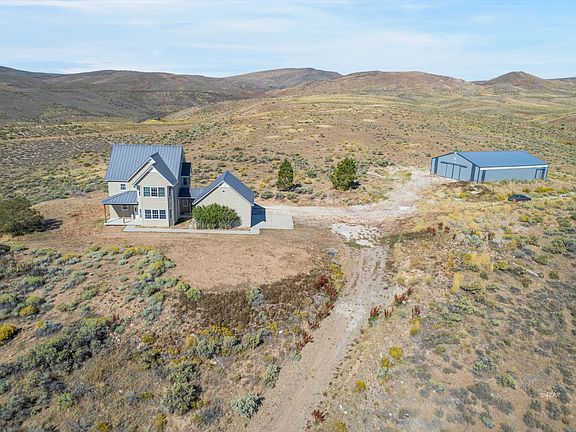 Welcome to 1297 Mesa Ct, in the heart of Adobe Heights. This property is what dreams are made of. Sitting at the top of a hill with panoramic views of the Ruby Mountains, it also sits on just under 12 acres. This home is private and quaint. This 3 bedroom 2.5 bath home is 2 levels. On the main level you have a large living room, large dining room with a view, a half bathroom for entertaining, and a generous sized kitchen with lots of counter space and storage. Upstairs sits all 3 bedrooms. The two bedrooms have a jack and jill full bathroom attached. The primary suite is huge with incredible views of the mountains, 2 closets, and a large bathroom with potential for you to make it your own. Not only does this home have a 2 car garage, it has a 42X72 shop. This beautiful home is all electric, and has a space for a new pellet stove if the new buyer desires. If you are looking for a home with space and land but close to town, you won't want to miss this one!